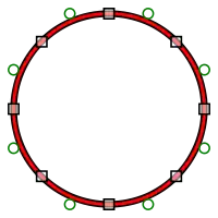 One common way is to use a certain set of user-specified control points (green circles in the figure) as the control points of the segments and to choose the center positions between two adjacent user-specified control points as the and control points (black rectangles in the figure). This actually guarantees that the spline is smooth (also in the mathematical sense that the tangent vector is continuous).