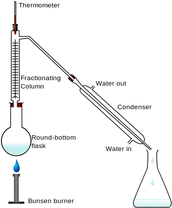 Fractional distillation is achieved by boiling a liquid compound at different temperatures. The components vaporize at separate temperatures and so they can be separated ([1]p.39).