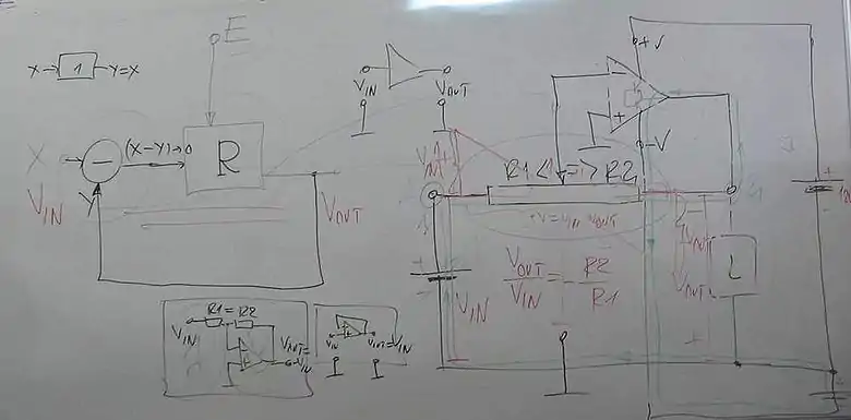 We have already seen how an op-amp overcomes various disturbances. Can we use its reaction to the disturbance as an output? Is this the idea needed to convert the inverter (K = -1) into an amplifier (K > -1)? Have you seen this phenomenon in your day's routine?