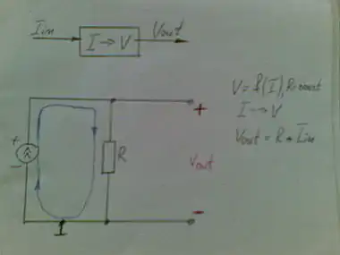 We know that the resistor converts the current IIN into a proportional voltage VOUT. So,