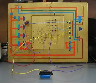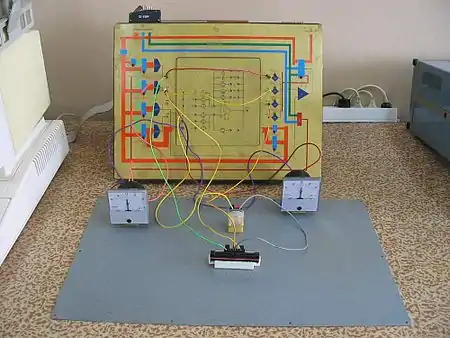 Power supply. Note that the analog-digital periphery "sucks" energy directly from the poor computer:); so, it acts not only as a computer but it supplies the periphery too. Then can we supply the very resistive object as well? Can we use the very DAC's to supply the resistor under test? This will allow the computer to control the obect! Only, the DAC's can give maximum 10 mA by their op-amp outputs. So, we can't supply the low-resistive (10 Ω) wire of group 65a!
