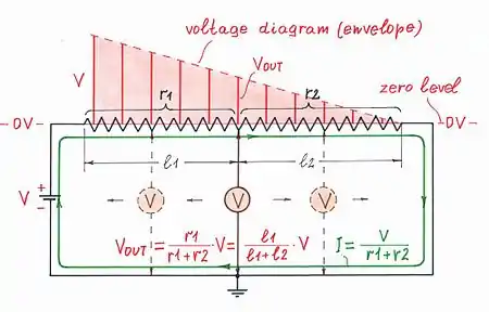 Welcome to the laboratory. The picture on the whiteboard represents the laboratory setup that your colleagues from group 65a have used for reproducing the genuine Ohm's experiment. You can use the results of their laboratory experiment to introduce the next great idea named voltage diagram. It will help us to visualize the voltages that your colleagues have measured along the resistive film.