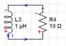 The equivalent inductor discharging circuit after the push button switch is released.