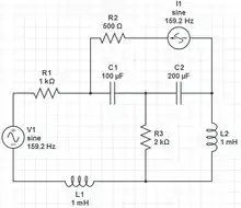 - Given that the voltage source is defined by and the current source is defined by , find all other voltages, currents and power of the sources.