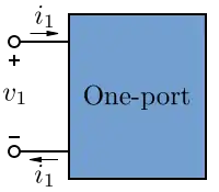 More generally, a one-port circuit can have any number of passive elements, independent and dependent sources and nodes. A port can be described as a circuit that has been designed, analyzed and tested. At this point, a circuit's internal details, its design, and its theory of operation are no longer important. It becomes a building block. Complex circuits may consist of a few ports where each port itself may be complex.
