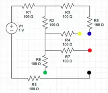 Two wires have been removed from this circuit. This has left resistors 2,3,7,5 and 8 dangling.