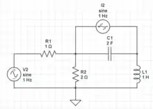 Complex 2R, L, C, voltage circuit