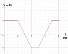 Given the two graphs of voltage and current, find and graph the power and energy for t=0 to t=8.