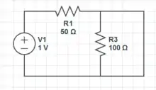 The effective circuit: Resistor 3 removed because not impacting the circuit
