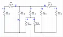 There are 9 currents that need to be found. 5 equations means that we need the values for 4 of the currents in order to find the other 9. Ok. Can do this problem.