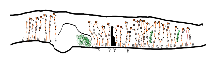| 31 | Lingua Viperina | 6a+ | Bolts have disappeared and can only be climbed in Top Rope | |||