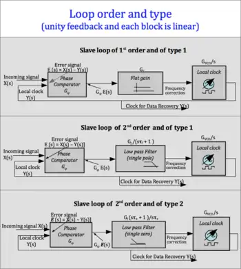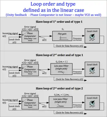 - Loops of 2nd order and of type 2 (if a linear phase comparator is used this structure is non-preferred) for applications of "regenerators" and of "end points". A detailed analysis of a linear (2.2) architecture (with all linear blocks) is still very important for the comprehension of its practical applications with a bang-bang phase detector.