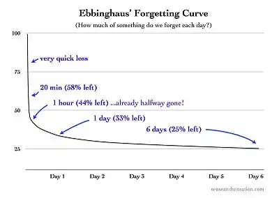 - ↑ Easley, H. (1937). The curve of forgetting and the distribution of practice. Journal Of Educational Psychology, 28(6), 474-478. doi:10.1037/h0057409