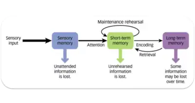 Memory structure is first introduced by Richard Atkinson and Richard Shiffrin in 1968. They created the modal model, which was also known as information processing model, to distinguish control processes and memory structures. Control processes are basically the specific processes that information stored, such as, encoding, retrieval processing. The human memory structure is consisted of three separate components, sensory memory, short-term memory and long term memory.[25] Each component has a specific function, on the whole, memory structures allow us to process and move information around in our brain. One criticism that worthy to mention is that the modal model maybe not just a unidirectional flow, the actual information processing is more complex.[26] Next, let's look at how sensory memory, working memory and long term memory interact and influence each other.