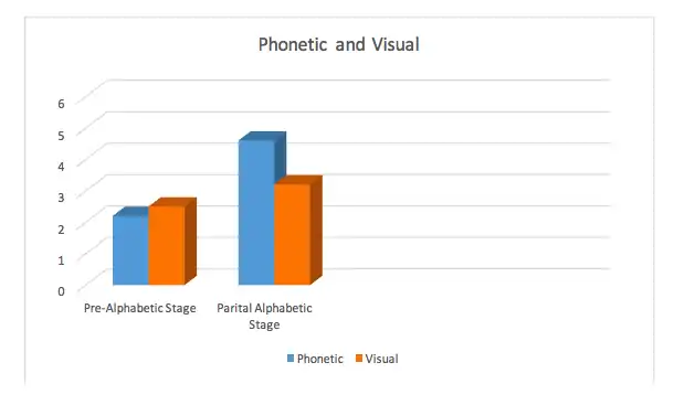 The results were that the pre-alphabetic stage readers learned to read visual spellings a lot easier than the phonetic spellings [49]. Ehri explained that this confirmed their idea that pre-alphabetic stage readers depend on visual cues because they lack knowledge of letters. The partial alphabetic stage readers displayed the opposite pattern and were able to use letter-sound cues to remember the words.