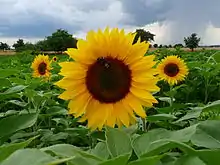 The sunflower rotates to follow the sun over the course of the day.