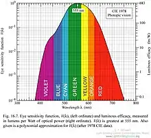 Human sensitivity to different wavelenghts of light.