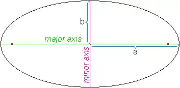- The major axis has a length of and the minor one .