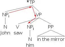 9) *[Johni’s dog]j saw himselfi in the mirror.
