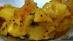 Potato masala (Tamil:uralai kizhangu masala) is a potato mixture that is often served alongside roti or folded inside, a dosa. The dosa and aloo masala combination, widely eaten in South India, is known as masala dosa. Coconut chutney is a common accompaniment.