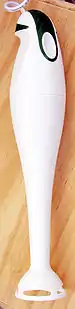 A wand blender (also known as a hand or stick blender) differs from a standard blender. It does not have a bowl, and its blade is situated at one end of a long stick, this allows it to be used to purée foods in their own containers (e.g., in saucepans while still on the stove top).
