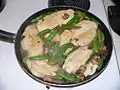 Mushrooms and peas are finished frying!
