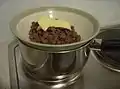 1.Melt the chocolate and butter together. (See Cookbook:Melting chocolate)