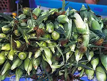 Corn refers to any of the cereal grains such as oats, wheat, barley, and maize. For the purposes of this article corn is taken to mean maize. It can be served fresh as a vegetable, or used as a grain. Fresh corn quickly turns starchy after it is picked; ideally it should be eaten the day it is picked. Because of this, frozen corn is often the most tasty type available.