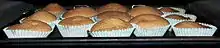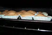 Cupcakes cooking in oven.