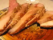This method is the cornerstone of many well known sauces and gravies. The resulting liquid can be seasoned and served on its own (sometimes called a jus), or with the addition of aromatic vegetables, such as onions or shallots, carrots and celery, or used as the base for a . The sauce can also be thickened by whisking in butter, through the addition of a starch, such as flour, cornstarch, or arrowroot, or simply simmered down with a steady heat to form a rich, concentrated reduction.
