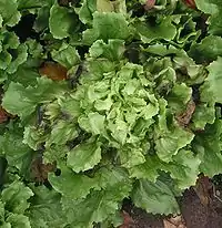 Curly endive (sometimes mistakenly called chicory in the United States) has green rimmed curly outer leaves.