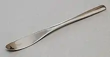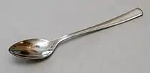 A grapefruit spoon is a utensil usually similar in design to a teaspoon that tapers to a sharp edge or teeth, the intent of the front serrated blade|serration being to separate the flesh of a grapefruit from its rind. Also called an orange spoon, citrus spoon, and fruit spoon, it is used for other citrus fruits, as well as kiwifruits and melons.