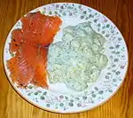 Potato stew with some additional Dijon mustard is excellent addition to gravlax.