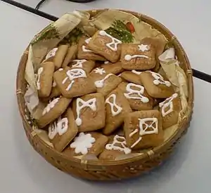 - Divide the dough into five or six portions. Take one portion and roll it flat, about 3mm thick. Molds are useful for shaping - cut some nice forms and put them on a baking tin.