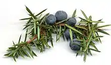 Juniper Berry - actually the cones of certain juniper trees, especially Junperus communis. It is used as a spice in European cuisines, and is the flavour in gin.