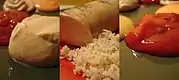 There are two ways of how you can serve the sauces. First, you can put them directly on the plate; either beside, or on top of the sausage. This is what I prefer when eating alone. Second, you can put them on an extra plate, or in small bowls. This is what I prefer when I have guests because - again - everybody can choose what he or she likes. Add the grated horse radish with care because a lot of people do not like its taste.