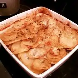 - Repeat these layers until the dish is full. Top with a final layer of the potatoes.