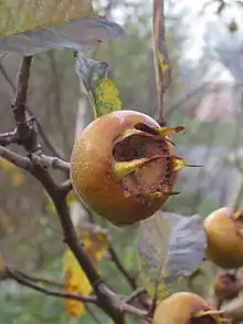 Medlars are largish shrubs or small trees. The fruit that grows on them is edible. They were introduced into Greece in 700BC and to Rome in 200BC. They are found in the winter, which is rather unusual. They can only be eaten raw after bletting.