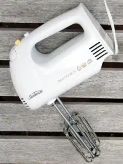 Usually, a mixer is used with whisk-like beater attachments. These are usually removable from an electric mixer, but permanently attached to a hand-cranked mixer. For this reason hand mixers are sometimes simply called beaters.