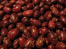 The alubia pinta alavesa, or the Álava pinto bean, is a red variety of the pinto bean which originated in Añana, a town and municipality located in the province of Álava, in the Basque Country of northern Spain. In October, La Feria de la alubia pinta alavesa, (The Festival of the Alubia pinta alavesa), is celebrated in Pobes.