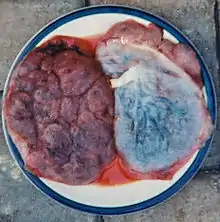 Placenta is an organ meat expelled soon after a birth. Placenta has a springy texture similar to the heart, but more sponge-like.