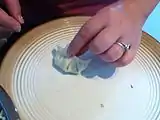 Step 6: When finished with the folds, the pot sticker should be fully sealed.