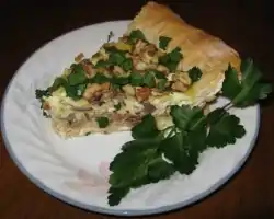 Radish pie is a savory pie suitable for a vegetarian diet. Radishes, fresh goat cheese, and walnuts give the pie a unique taste, which is most flavorful when served cold.