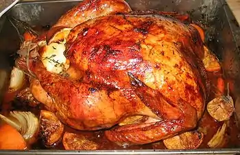 - 1 turkey (12 to 14 pounds gross weight), rinsed thoroughly; giblets, neck, and tailpiece removed and reserved to make gravy