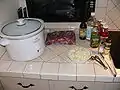 - Add the bacon drippings/vegetable oil to a skillet. Heat on high. Add the beef to the skillet, browning the meat on all sides. Do not cook completely through. Transfer meat to the slow cooker.
