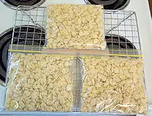 - Load the soon-to-be tempeh into your incubator, preferably on racks that will allow air circulation. An electric oven with a light on makes a pretty good incubator, because the light provides just enough heat to keep the beans warm while the fermentation starts happening.