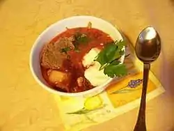 Ukrainian Borshch is a vegetable soup with beetroots as its characteristic ingredient.