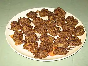 - Drop mixture onto the paper in tablespoonfuls. You should get 30-40 meatballs. Don't worry if the mixture falls apart a little on tray.