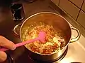 8. frying the onions in the meat juices