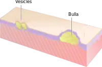 - Bulla: A bulla is a large blister,[32] a rounded or irregularly shaped blister containing serous or seropurulent fluid, equal to or greater than either 5[31] or 10 mm,[30] depending on one's definition of a vesicle.[1]